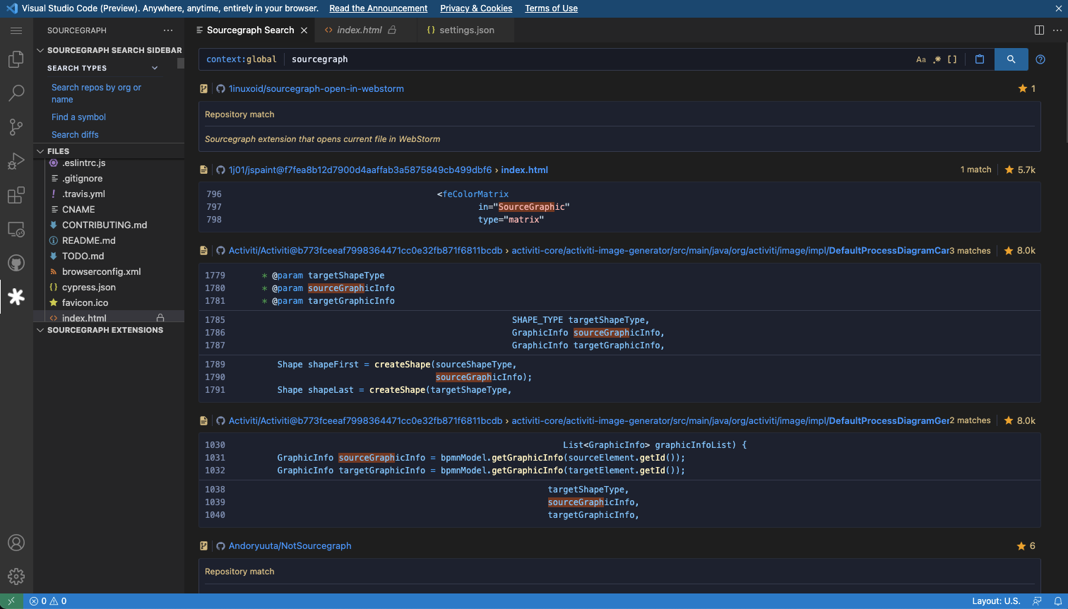 Currently file links in search result page are being opened in new tabs on VS Code Web.