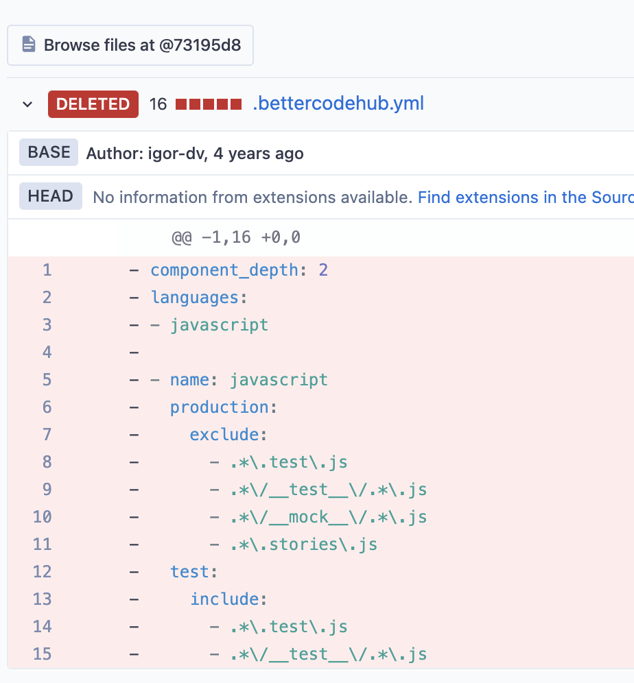 The last line is missing. It says 16 lines deleted but only shows 15 deleted lines.