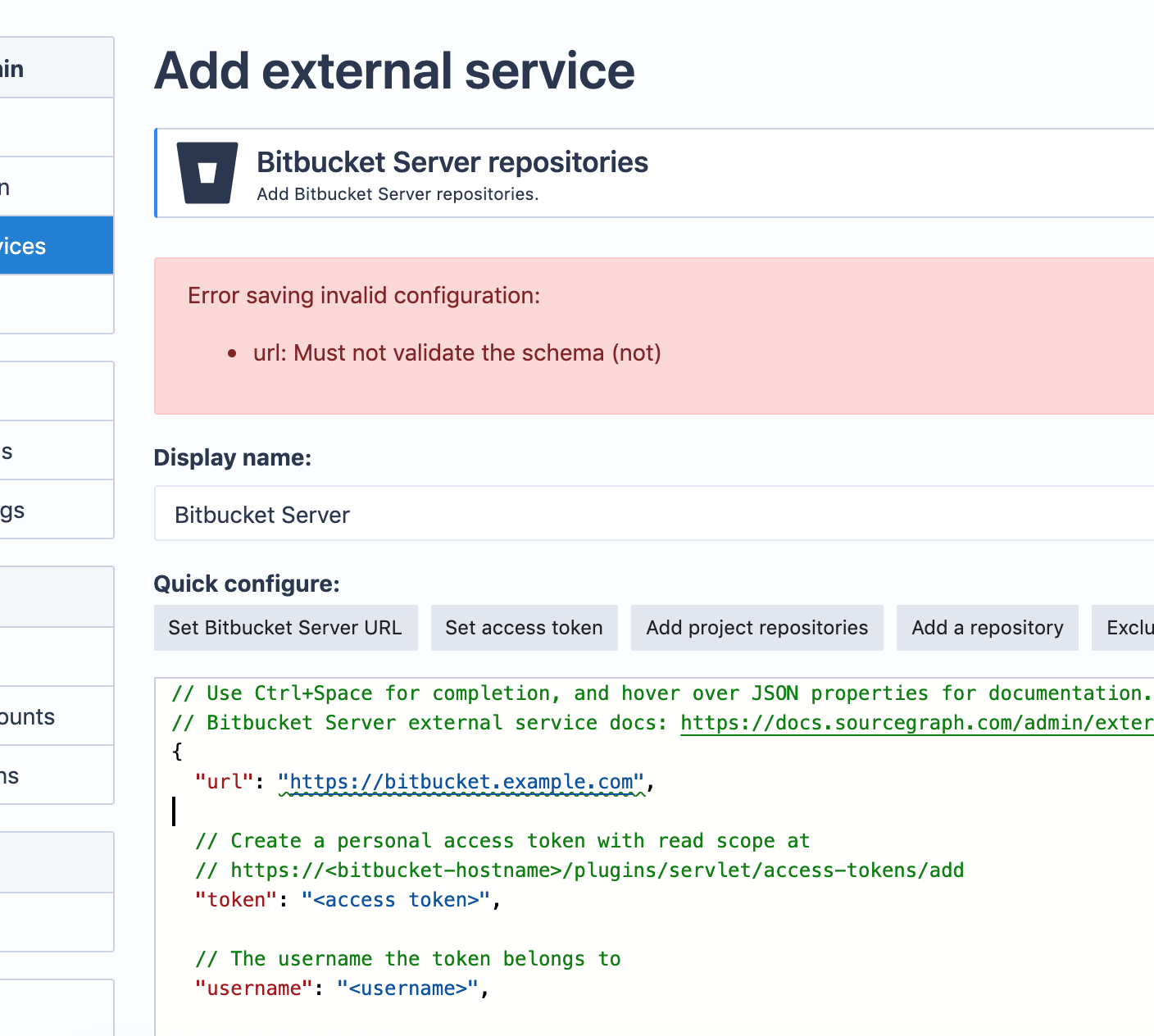 I forgot to enter the right URL for my bitbucket instance and left it as the default and hit save, it tells me this (what on earth is all this negation???):