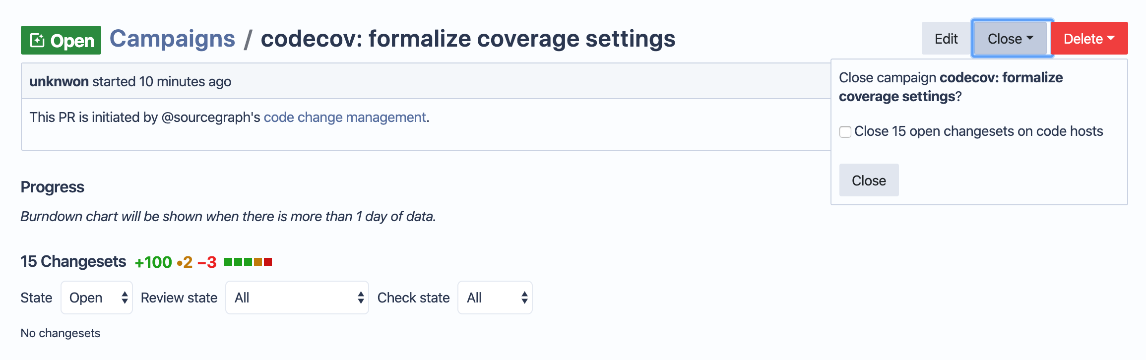 "Close" and "Delete" popups show "open changesets" even though they are merged