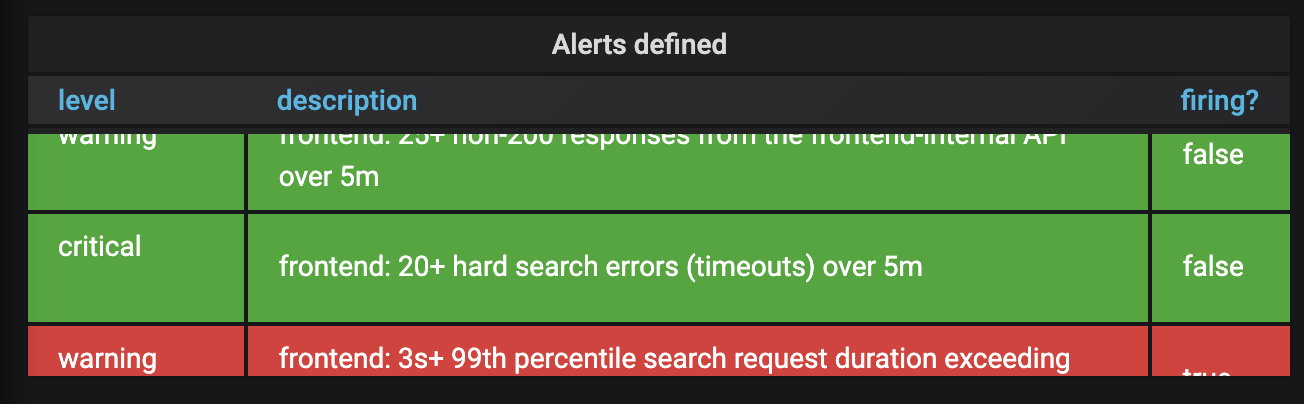 Since the list is long, the firing alerts should be sorted at the top of the list always so they are most visible: